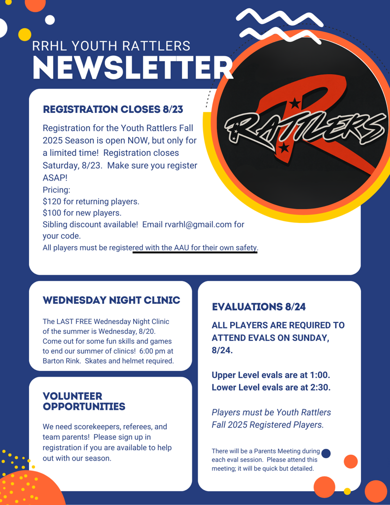 RRHL Youth Rattlers' Fall 2025 Season Critical Information