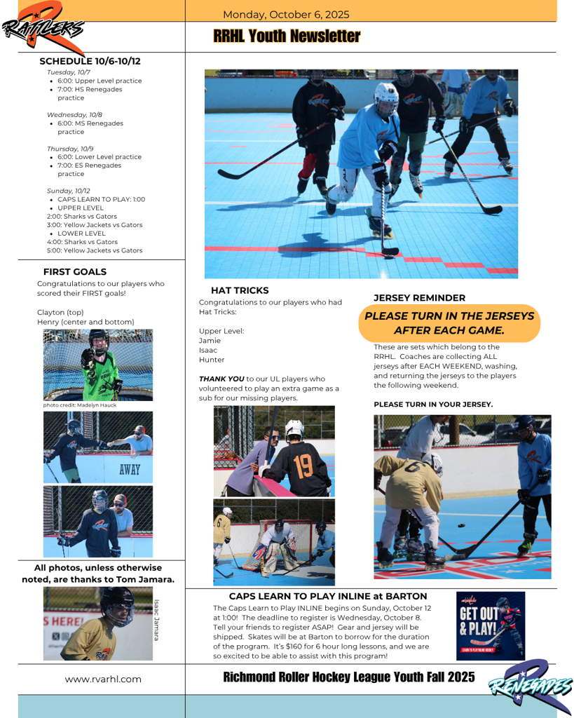 We're excited for another great season of Capitals Inline Hockey League with the Richmond Renegades and hope to see your player on the team!